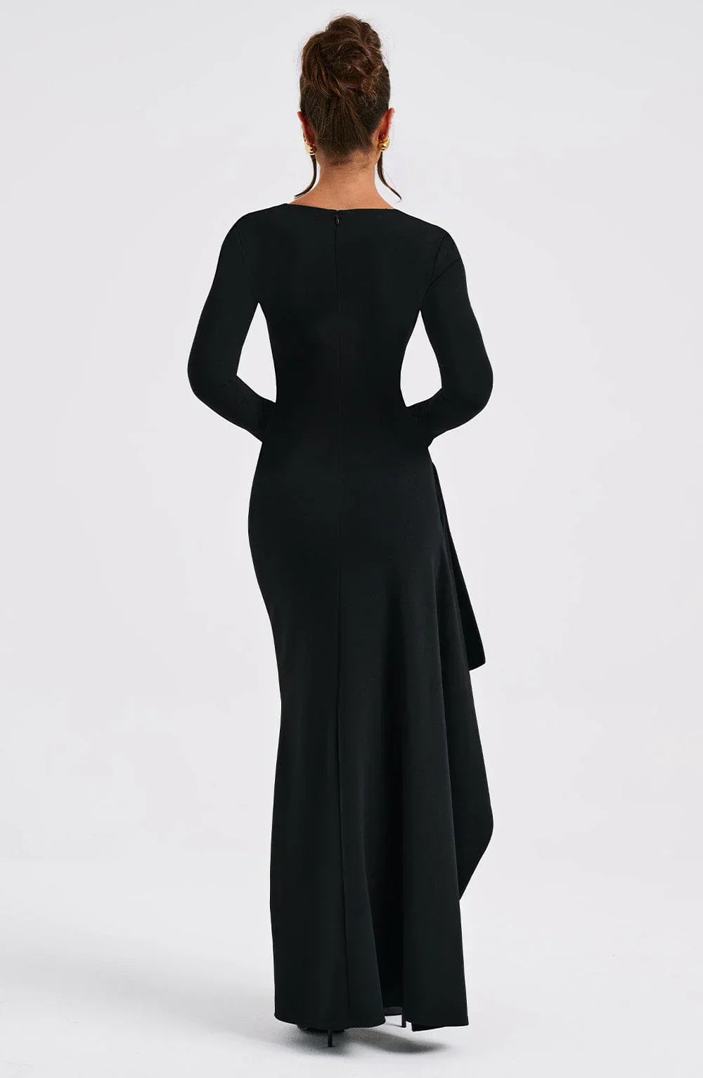Jordana is a timeless classic you'll love and wear forever. Made in our premium stretch crepe which fits like a second skin, this chic maxi has long sleeves with flared cuffs, pleat detail to the waist and a draped, thigh high split. Style her with glam waves, a metallic bag and heeled mules or platforms.