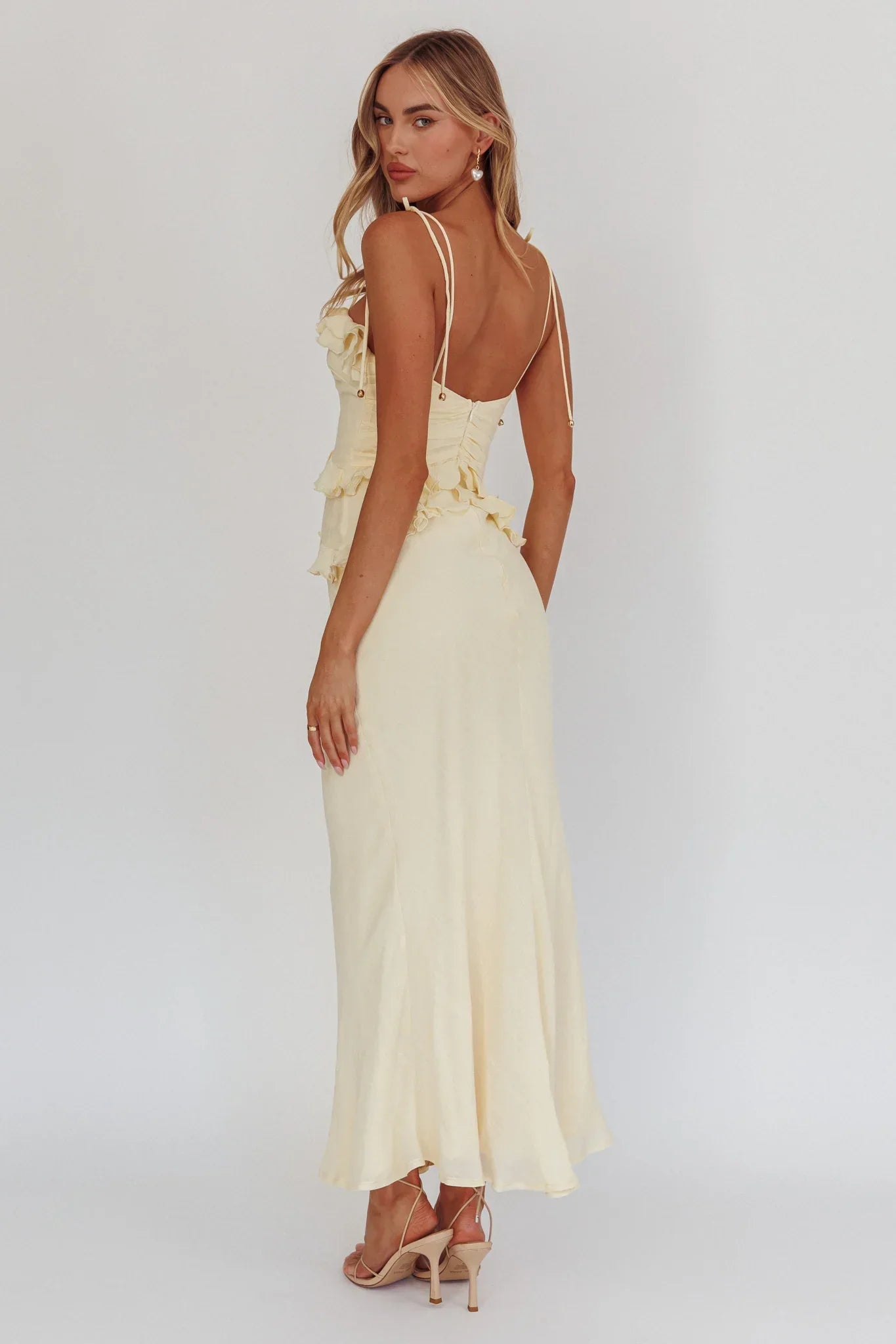 Steal the spotlight in our gorgeous On A Roll maxi dress. We are in love with its frill trim detail and tied shoulder straps. Perfect for Friday night dinner and cocktails with your girls! Team it with strappy heels and a saddle bag for a look that will turn heads.